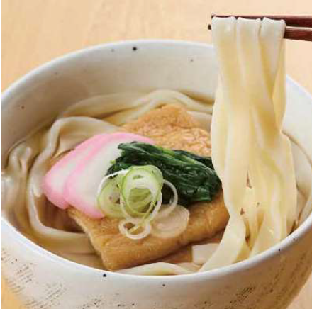 以名古屋名物「棊子麵」為雛型設計的寬平烏龍麵。不論做成溫熱湯麵或清爽冷麵都非常適合。