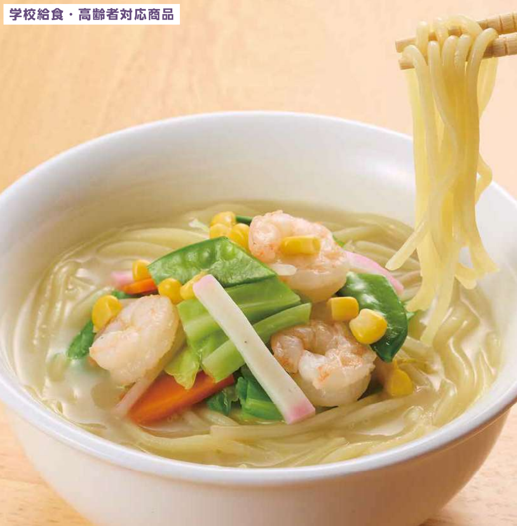 以長崎強棒麵為設計靈感製作,採用國產小麥粉,並將麵條調整為較短尺寸,特別適合學校營養午餐使用,且具備良好耐放性,不易因時間變化而影響口感。