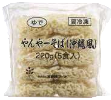 以沖繩蕎麥麵為設計靈感製成的中華麵,麵體扁而粗。