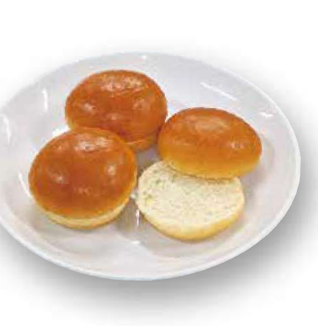 直徑約7公分的迷你麵包,口感蓬鬆柔軟,已預先切片,適合烘烤或加熱,能快速完成料理。